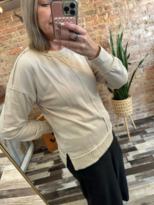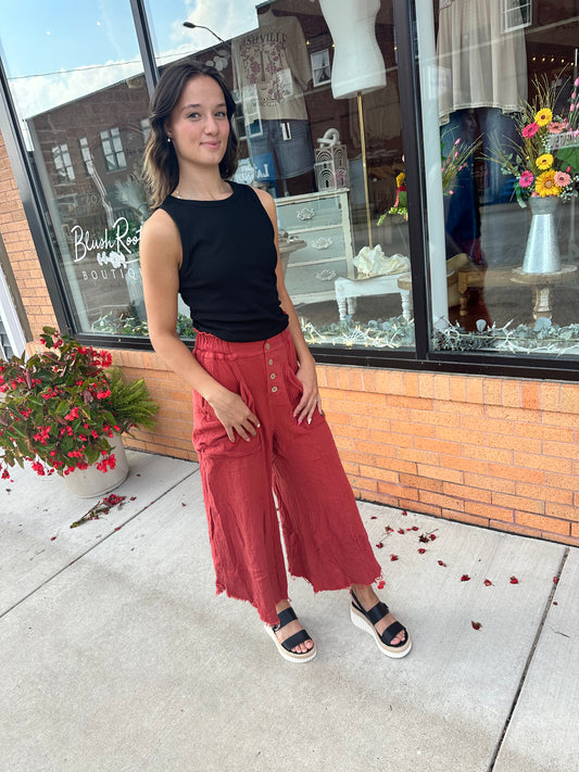 The Tara Mineral Washed Fray Hem Linen Cotton Wide Pants