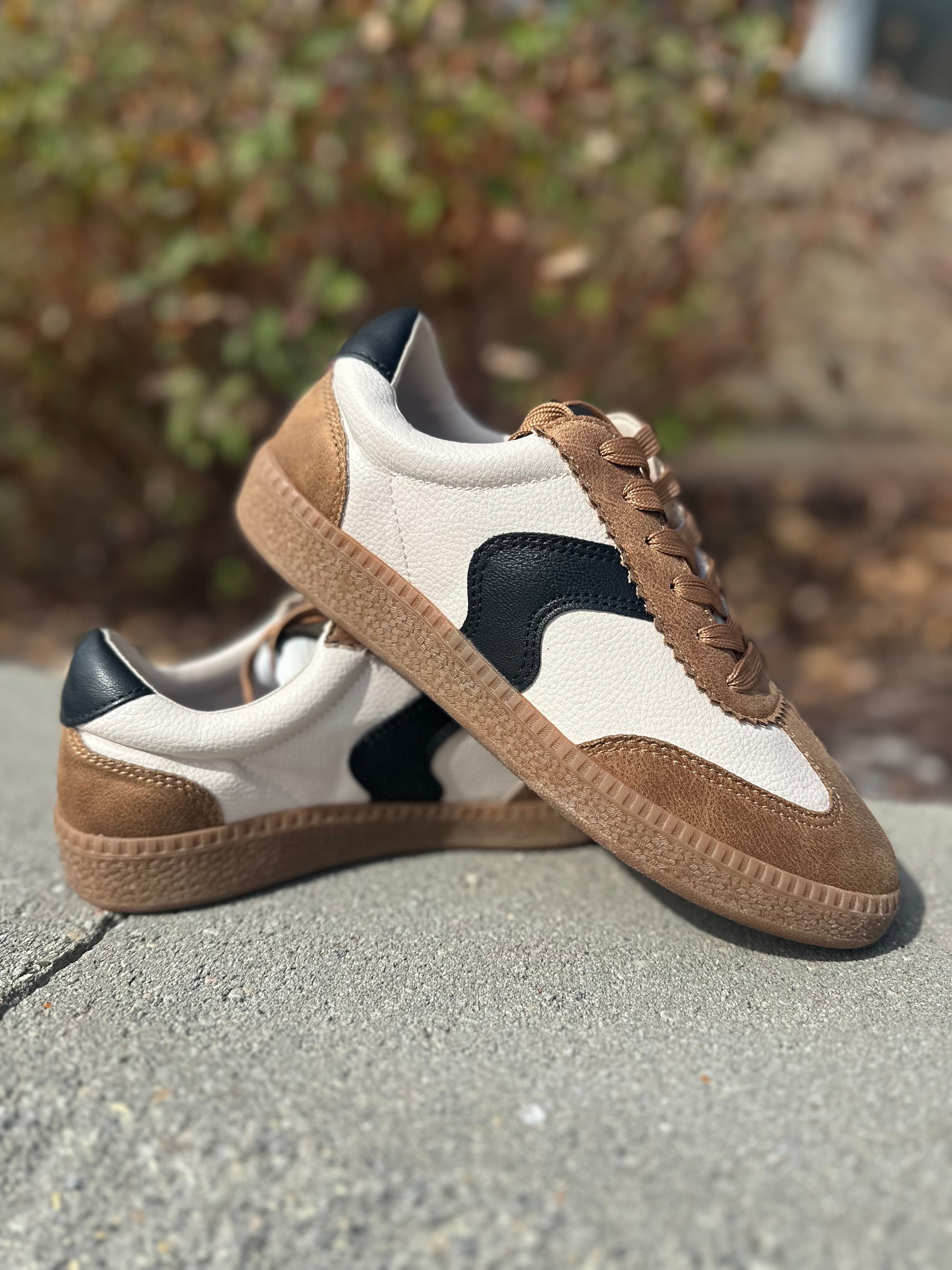 Meet the sneaker that does it all—cool, casual, and effortlessly stylish. With its vintage-inspired color-block design and modern comfort features, this pair is made for everyday wear with a touch of edge. Whether you’re running errands, styling with denim, or keeping it casual chic, these sneakers are the perfect go-to. Size up if you wear a half size! Comes with black laces too!