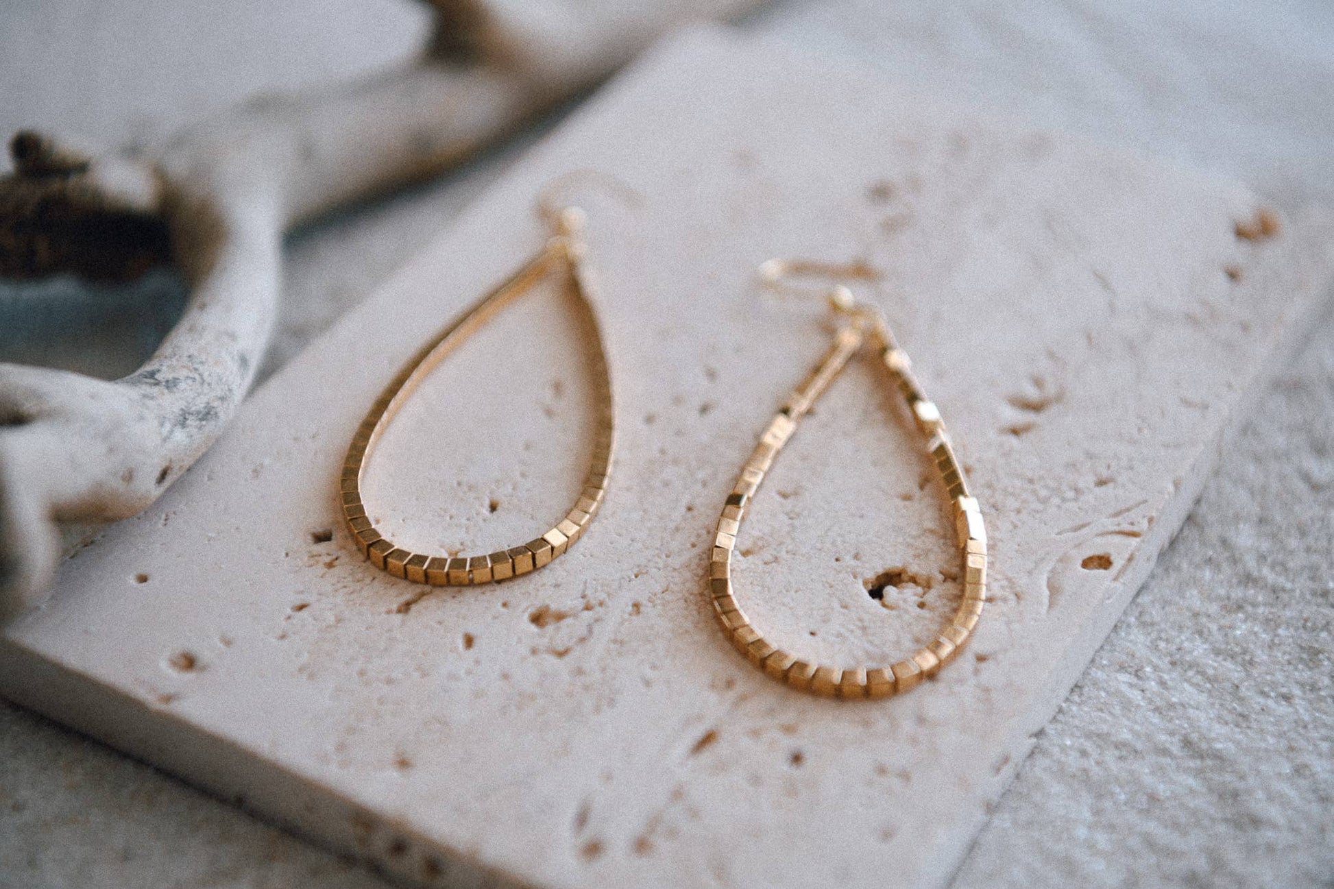 Hepburn Gold Beaded Teardrop Hoop Earrings