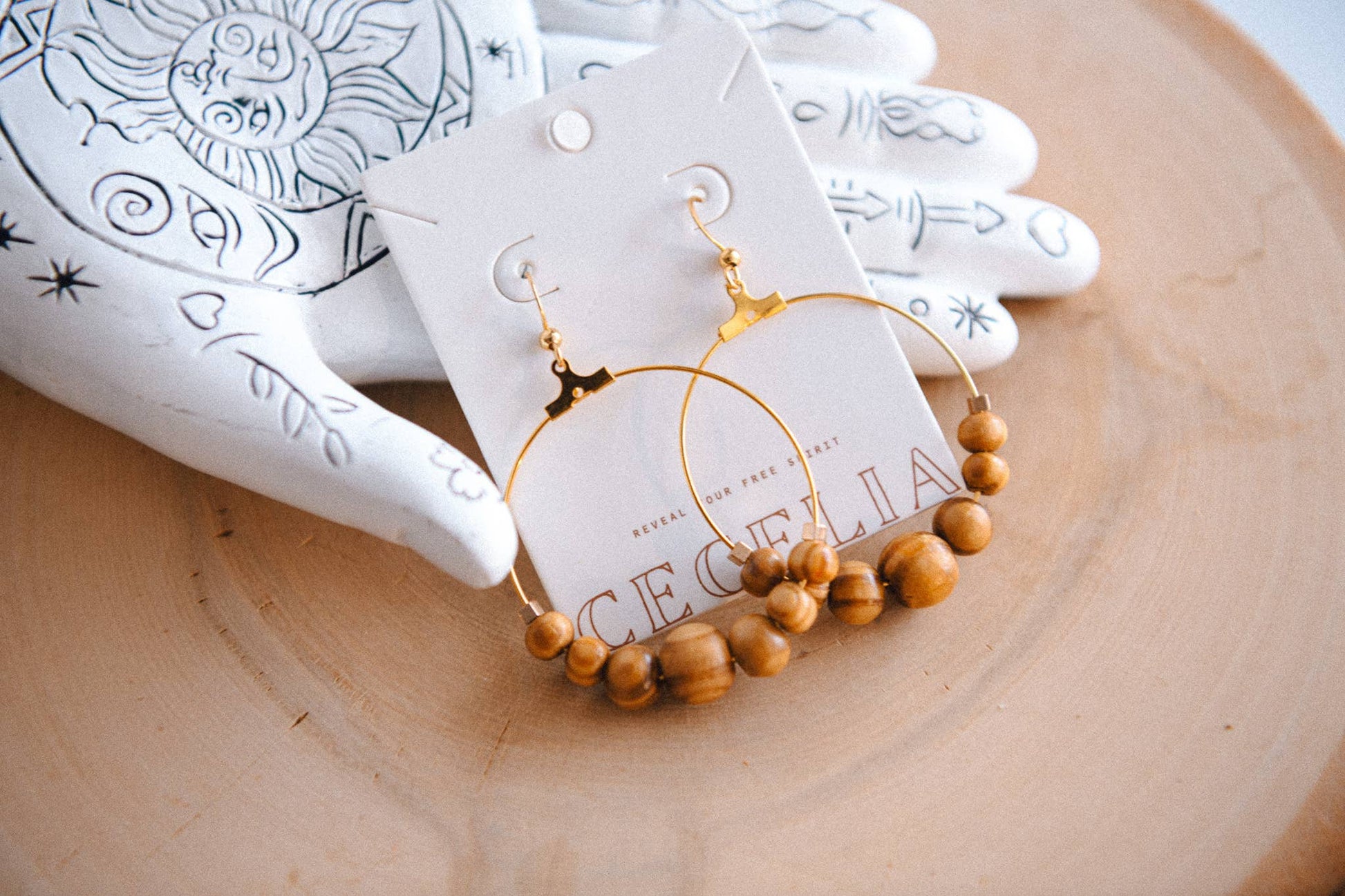 Elevate your style with these stunning handmade wooden bead hoop earrings! Featuring natural, lightweight wooden beads arranged on a sleek gold-tone hoop, these boho-inspired earrings offer a perfect blend of rustic charm and modern elegance. Their neutral tones make them versatile for any outfit, from casual everyday wear to chic statement looks.