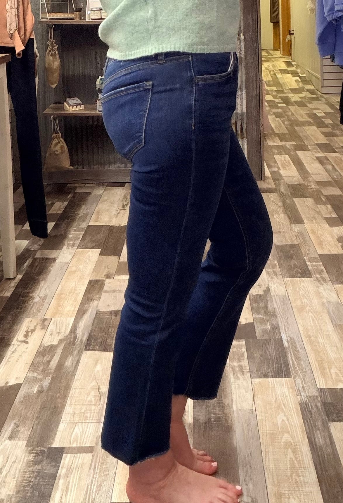 Lovervet Mid Rise Raw Hem Kick Flare