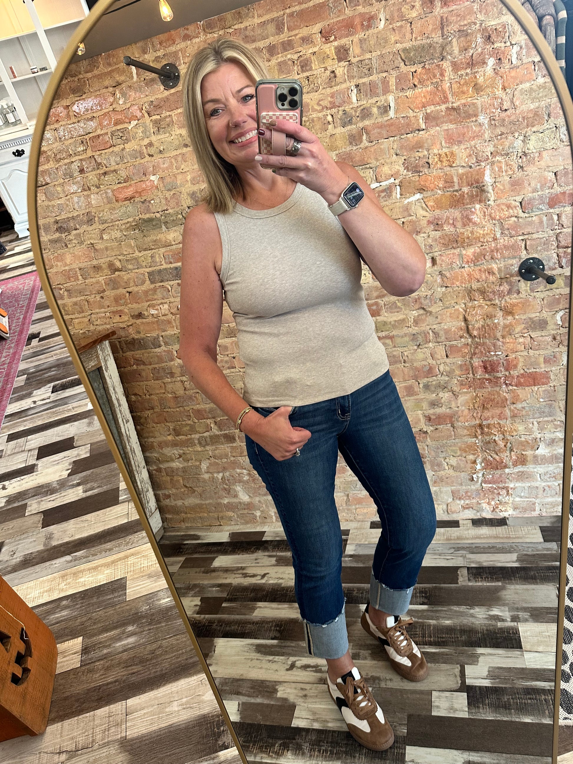 Step into a fresh twist on classic style with the Mica Mid Rise Slim Straight Leg jeans. Designed to hug just right at the mid-rise and glide straight down your legs, these jeans sport a playful cuffed hem that adds a flirty flair to your look. Perfect for pairing with boots or sneakers, they bring effortless cool to any outfit. Embrace comfort and charm in one confident package! Size down one, Kari is in the size 5 and normally wears a 7.