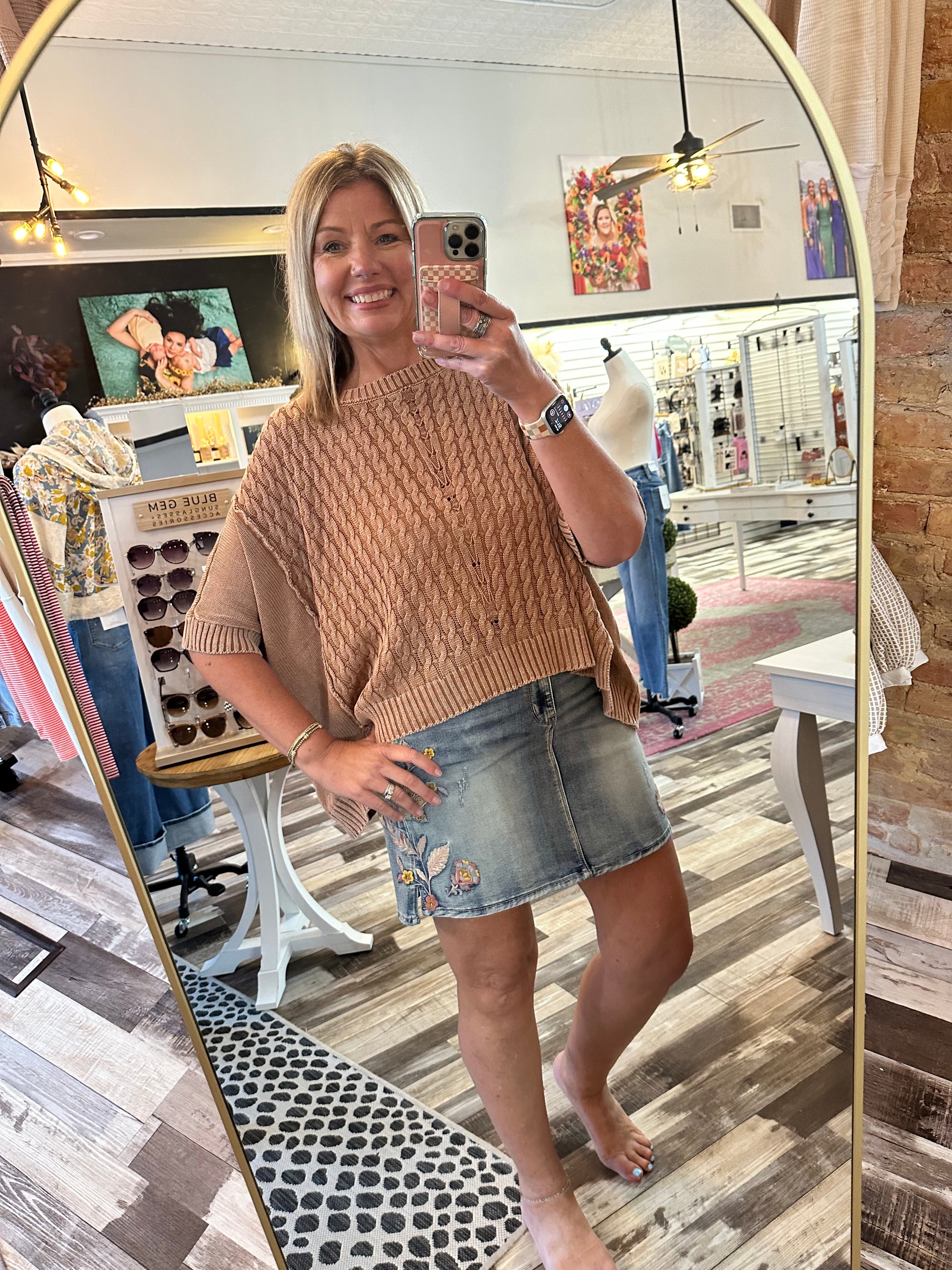 Cozy meets cool in this Mineral Washed Knit Sweater Pullover! Featuring half sleeves with dropped shoulders and side slits, it’s perfect for layering or rocking solo. The cable knit front adds texture, while the ribbed cuffs and hem keep things snug. With a relaxed, loose fit and a slightly sharkbite hem for extra flair, this sweater is ready to bring laid-back vibes to your wardrobe. This fit is oversized! I am in the small. 1X/2X sizes can do the large!