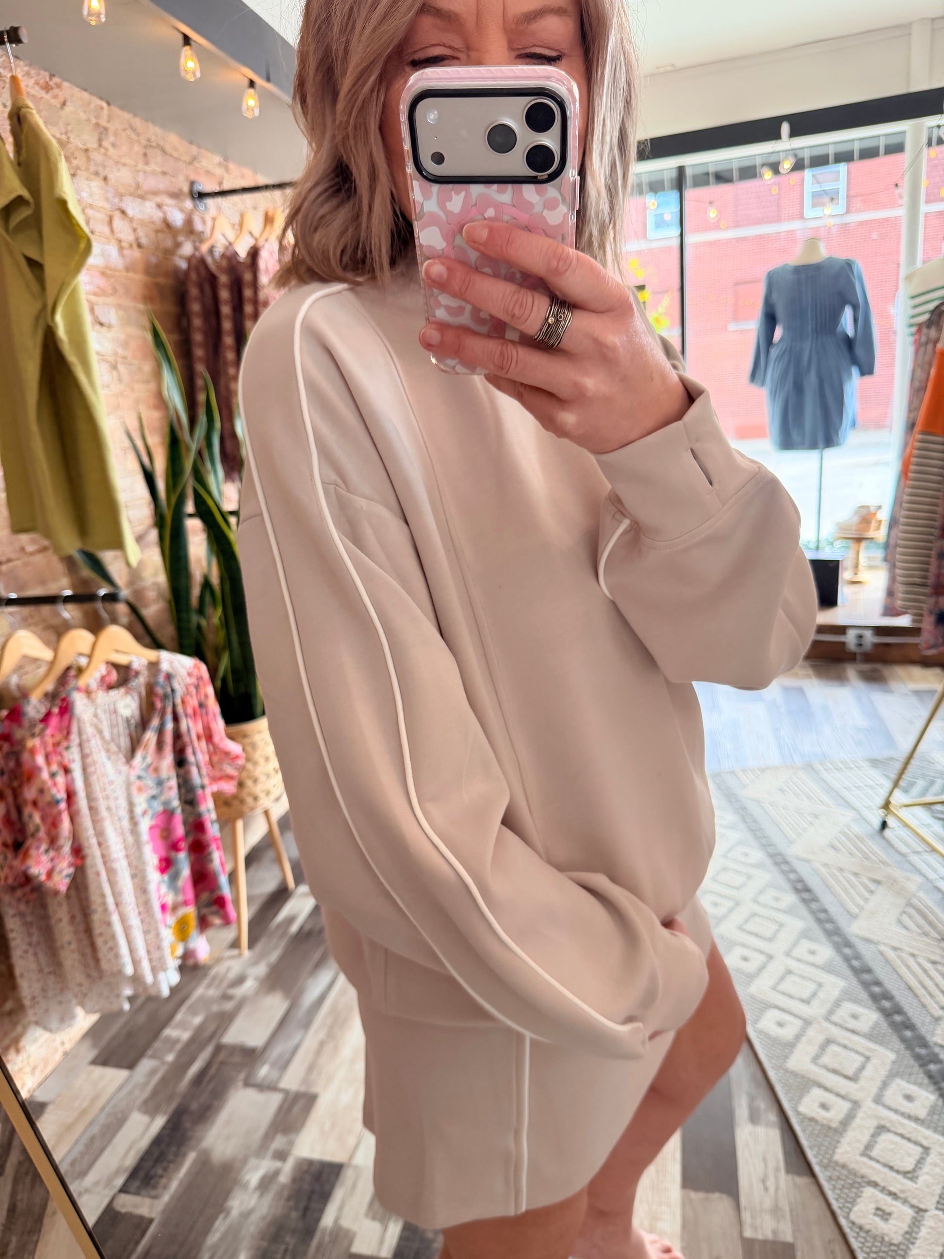 Modal Scuba Two Stripe Piping Mock Neck Top