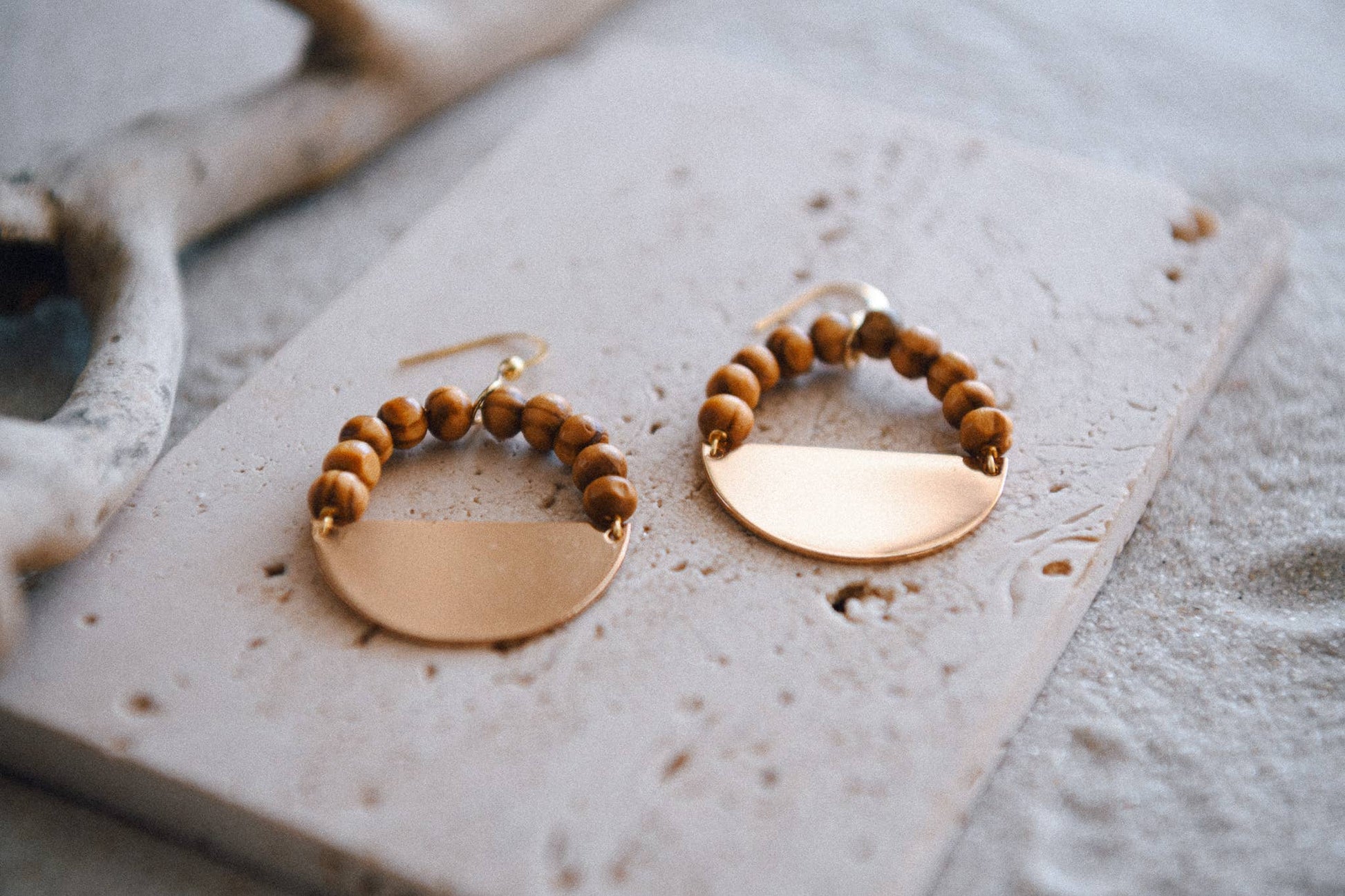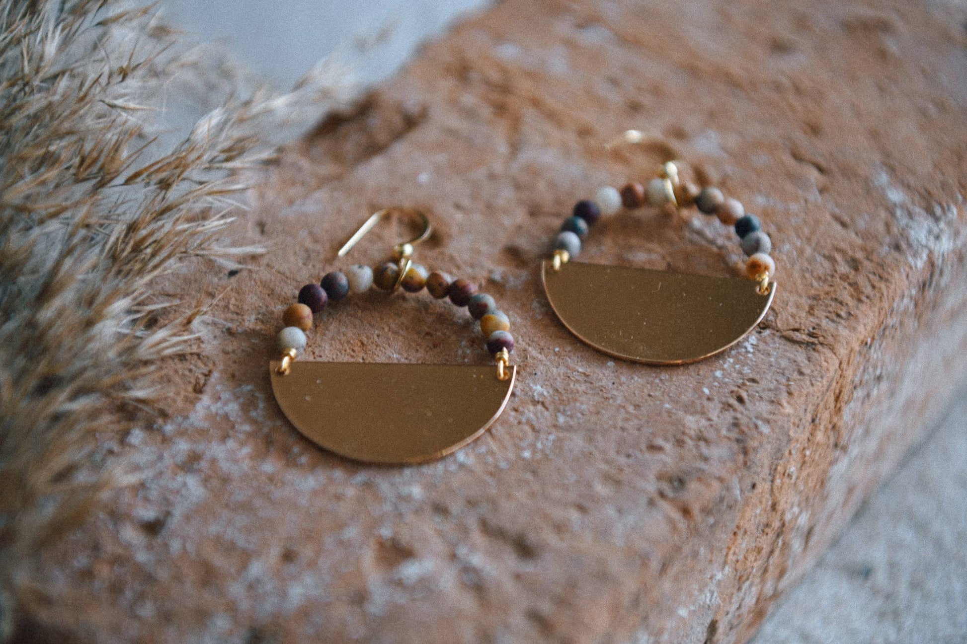 These elegant hoop earrings combine the grounding beauty of natural gemstones with the sophistication of gold-plated half-moon accents. Designed to bring harmony and style, the lightweight structure makes them comfortable for all-day wear. The blend of organic and refined elements creates a timeless look, perfect for both casual and dressy occasions. A unique statement piece inspired by nature’s balance.