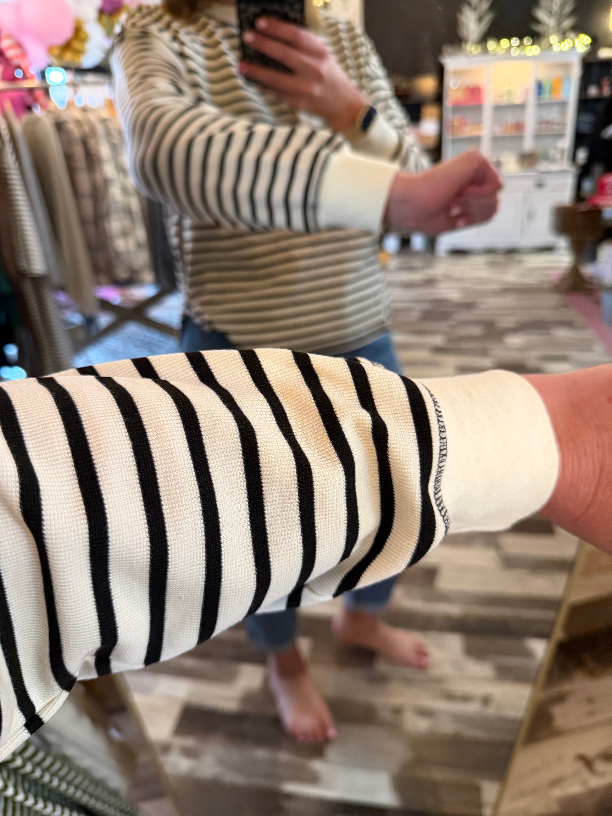 Stripe Henley Snap Button Long Sleeve Knit Top
