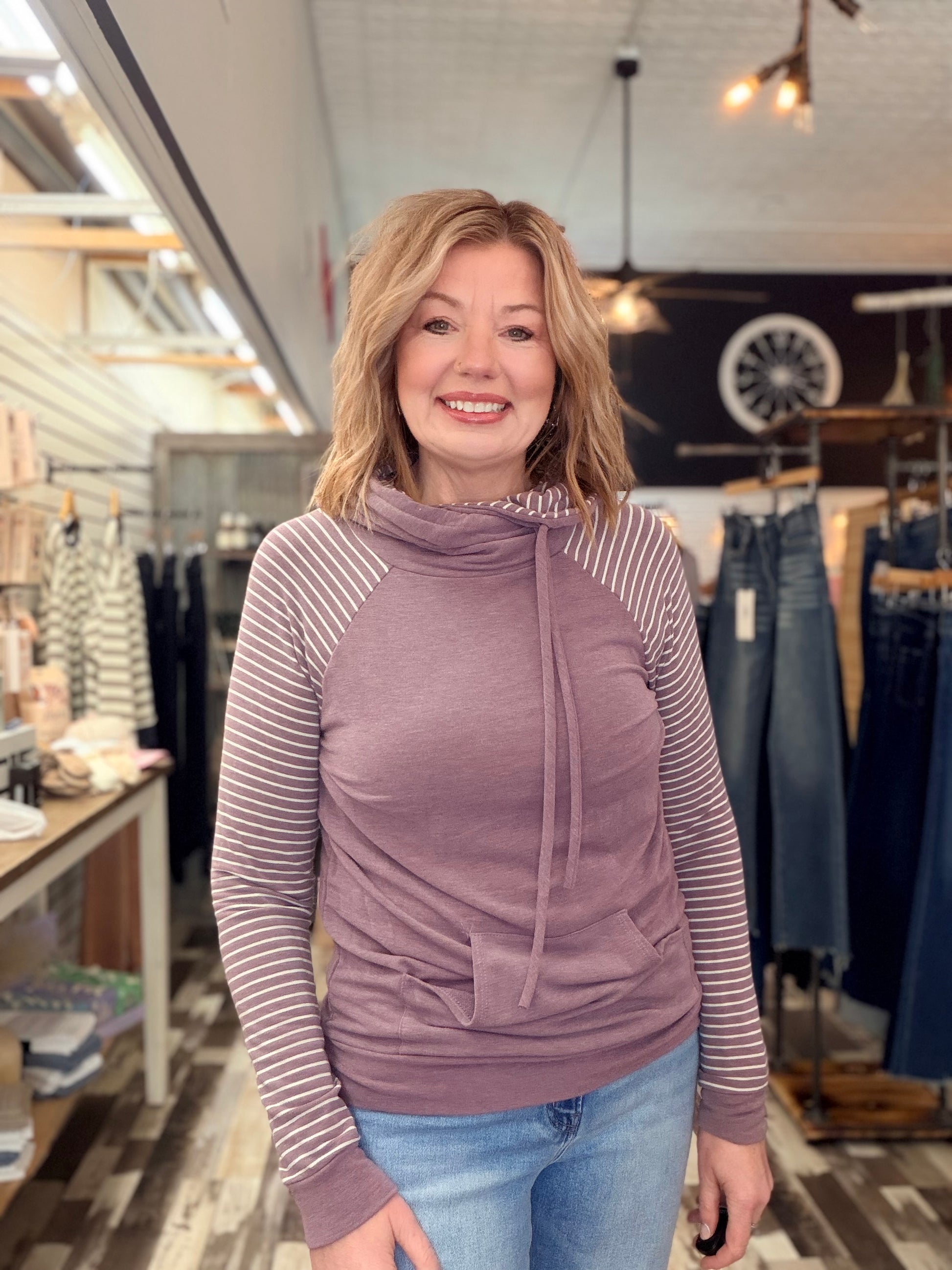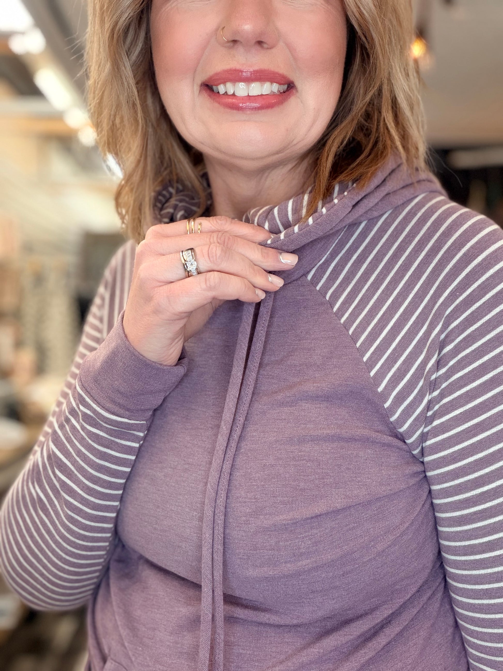 Wrap yourself in cozy comfort with this striped drawstring hoodie—the perfect layering piece for any season. Featuring eye-catching stripe contrast on the sleeves, a functional drawstring hood, and a roomy front pocket, this hoodie keeps things fun and functional. The banded hem and long sleeves provide a polished fit that works whether you're lounging at home or heading out for an adventure. Soft, versatile, and undeniably stylish.