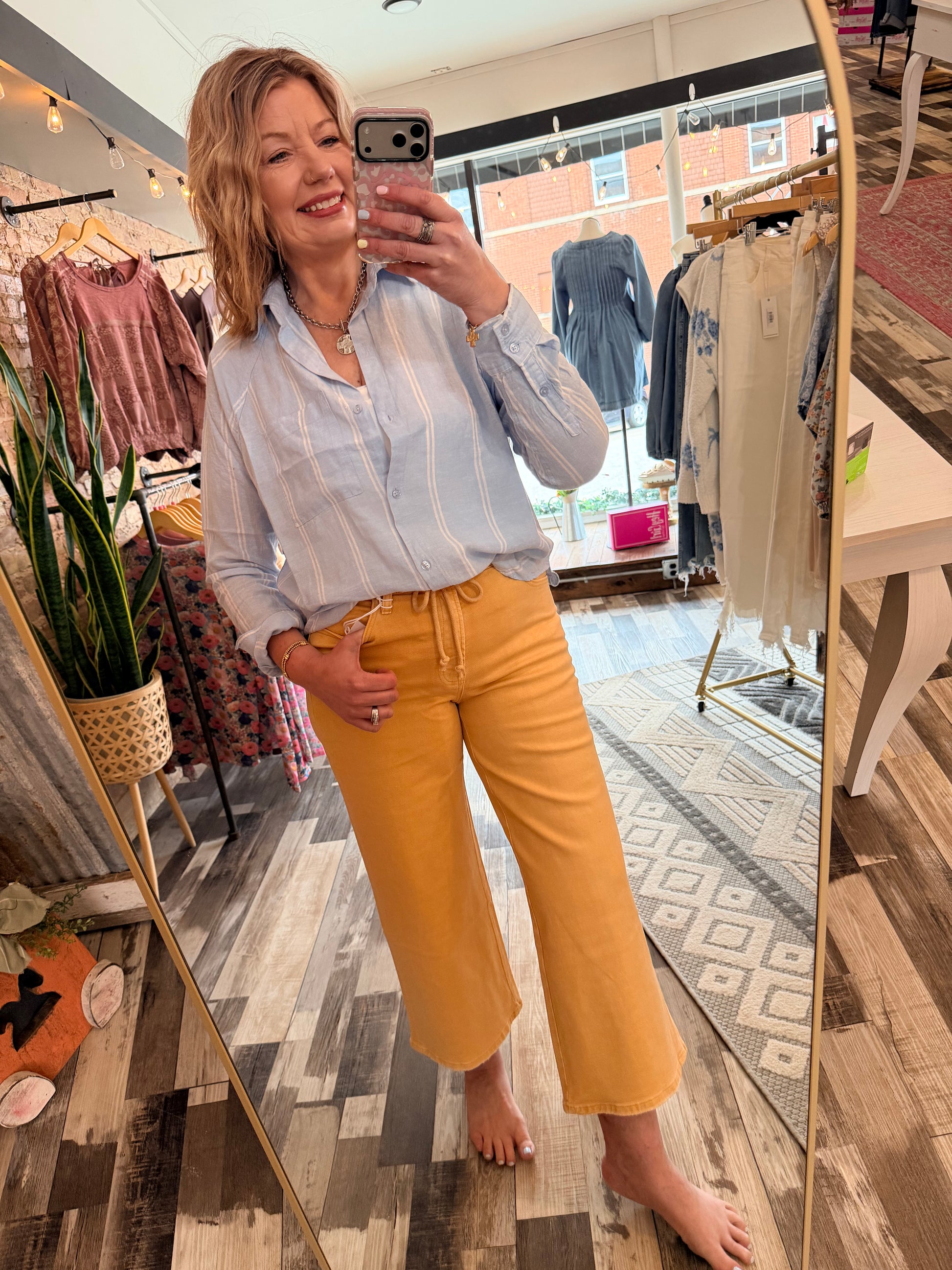 Elevate your denim game with these Vervet High Rise Drawstring Color Crop Wide Leg Jeans. Designed for comfort and style, these jeans feature a flattering high-rise waist with an adjustable drawstring for a customized fit. The classic five-pocket construction keeps essentials secure, while the comfort stretch fabric moves with you throughout the day. Cropped at just the right length, the wide-leg silhouette creates an effortlessly chic look that pairs with everything from sneakers to heels. Finished hem details complete the polished aesthetic. Perfect for casual outings or dressed-up occasions.