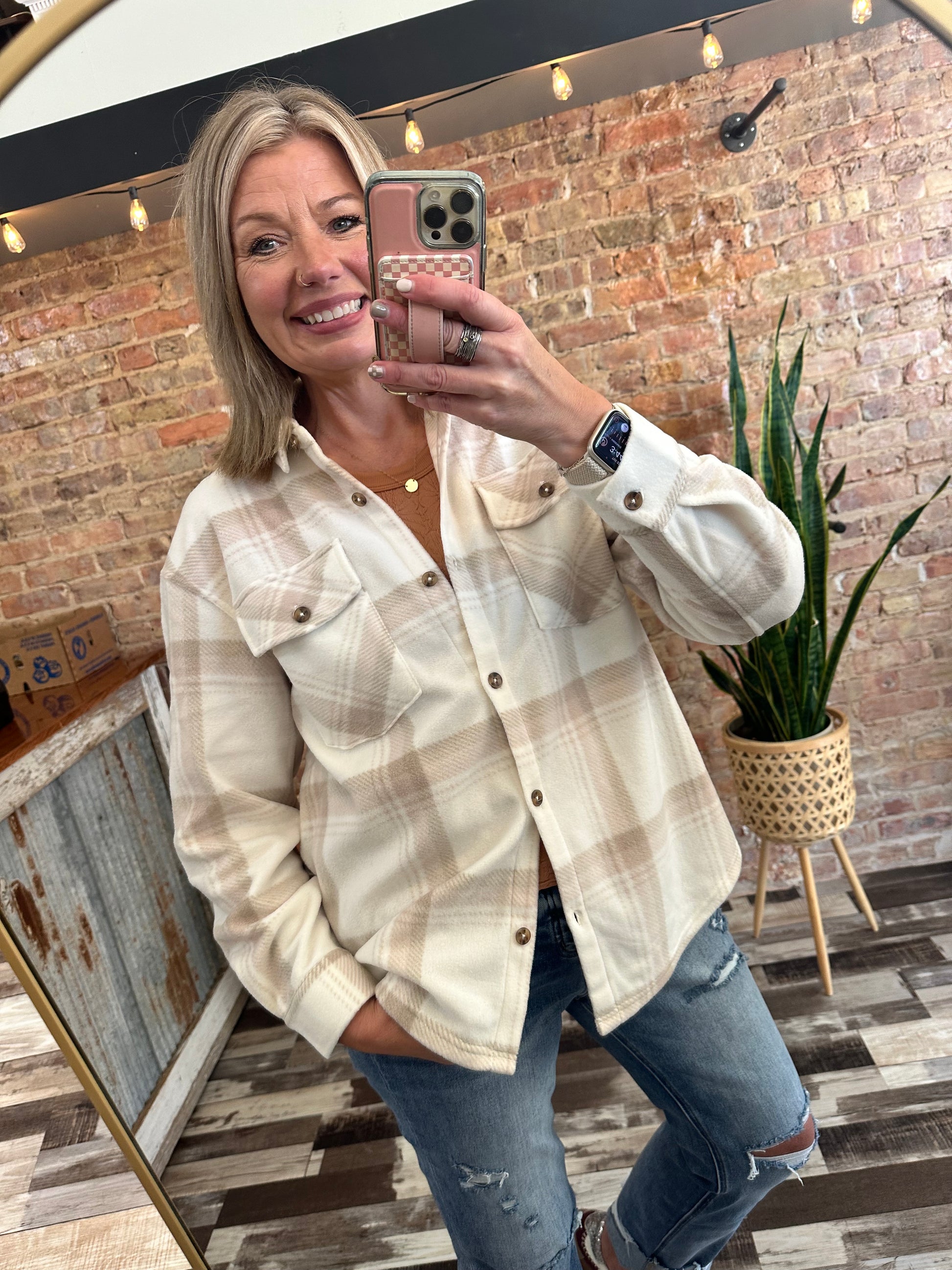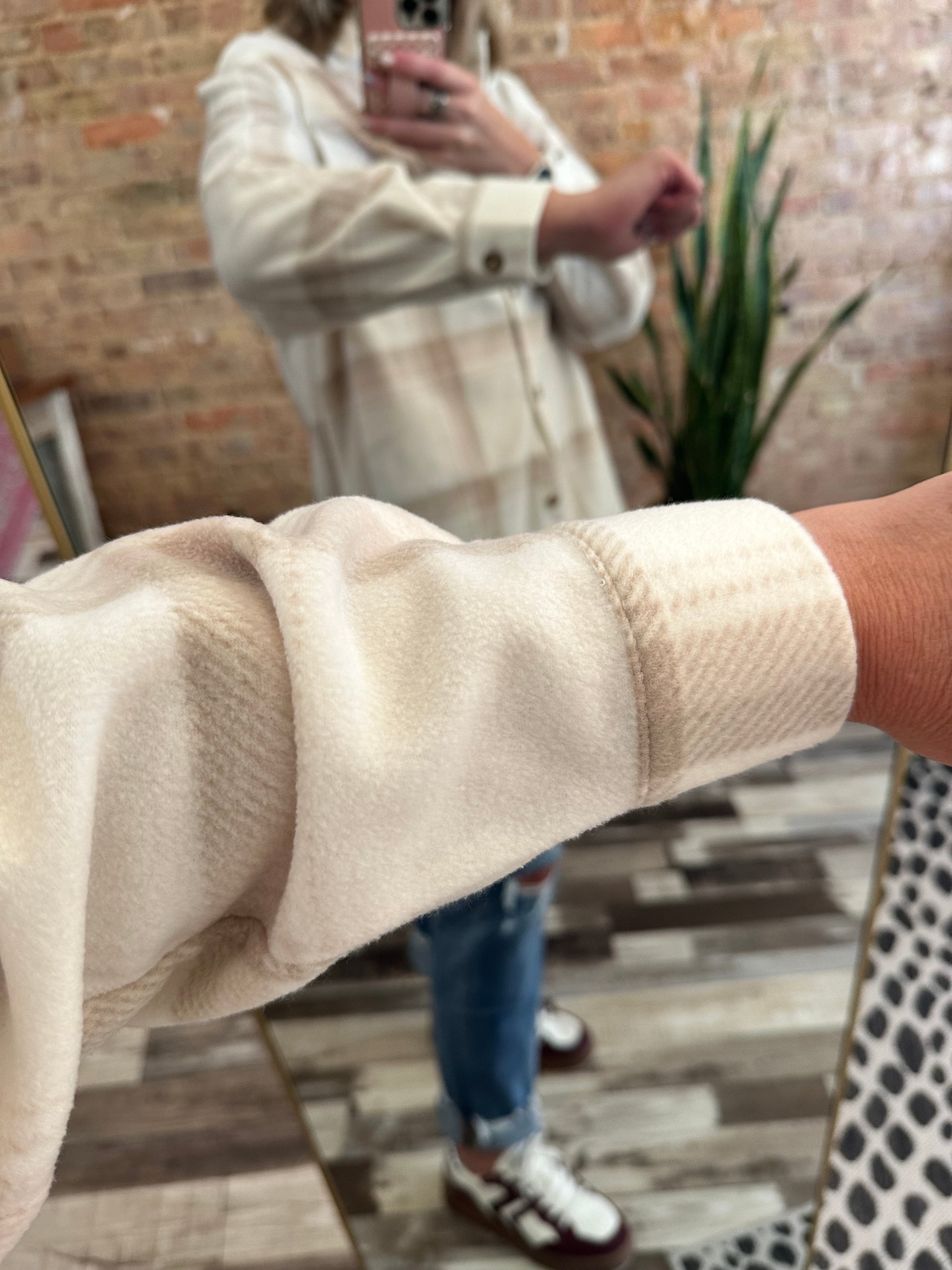 The Hiker Two Tone Fleece Jacket by Z Supply combines function and style with its classic plaid and check pattern in a soothing blue. Designed for women, this jacket features a collar and long sleeves to keep you cozy during chilly days. It includes practical pockets and a button closure for convenience. Care instructions advise hand washing and line drying.