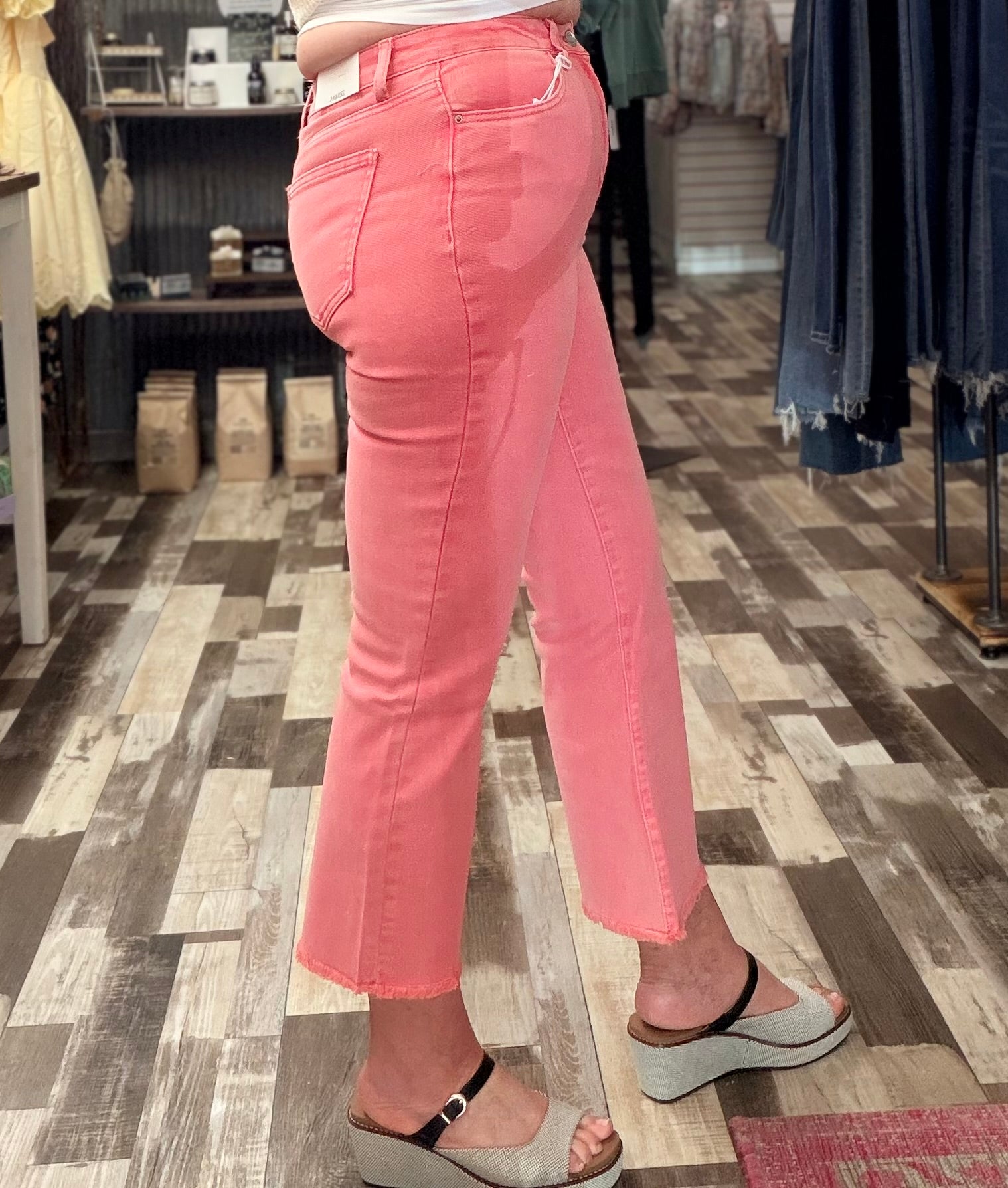 Elevate your denim game with these acid-washed high-waist bootcut jeans. The frayed hem adds an effortless, on-trend edge while the good stretch ensures all-day comfort and movement. Perfect for pairing with your favorite tops and sneakers or boots for a versatile look that works from casual outings to weekend adventures.